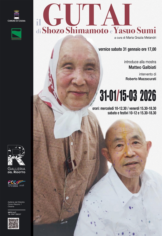Grazie ad alcuni importanti collezionisti nasce questa esposizione che, visti gli spazi ridotti della Galleria del Ridotto, prende in esame due degli artisti storici di fama internazionale che hanno formato il Gruppo Gutai fin dalle origini, Shozo Shimamoto (1928-2013) e Yasuo Sumi (1925-2015).
