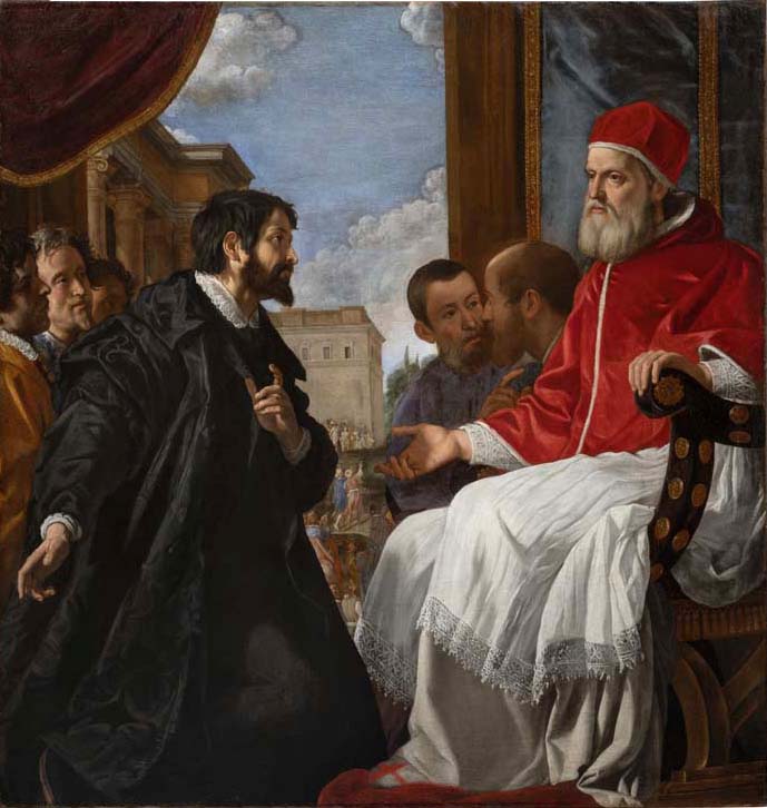 (Anastasio Fontebuoni (Firenze 1571-1626), Michelangelo nelle vesti di ambasciatore di Firenze davanti a Giulio II a Bologna nel 1506, mentre presenta al Papa le sue scuse per essere partito da Roma, 1621