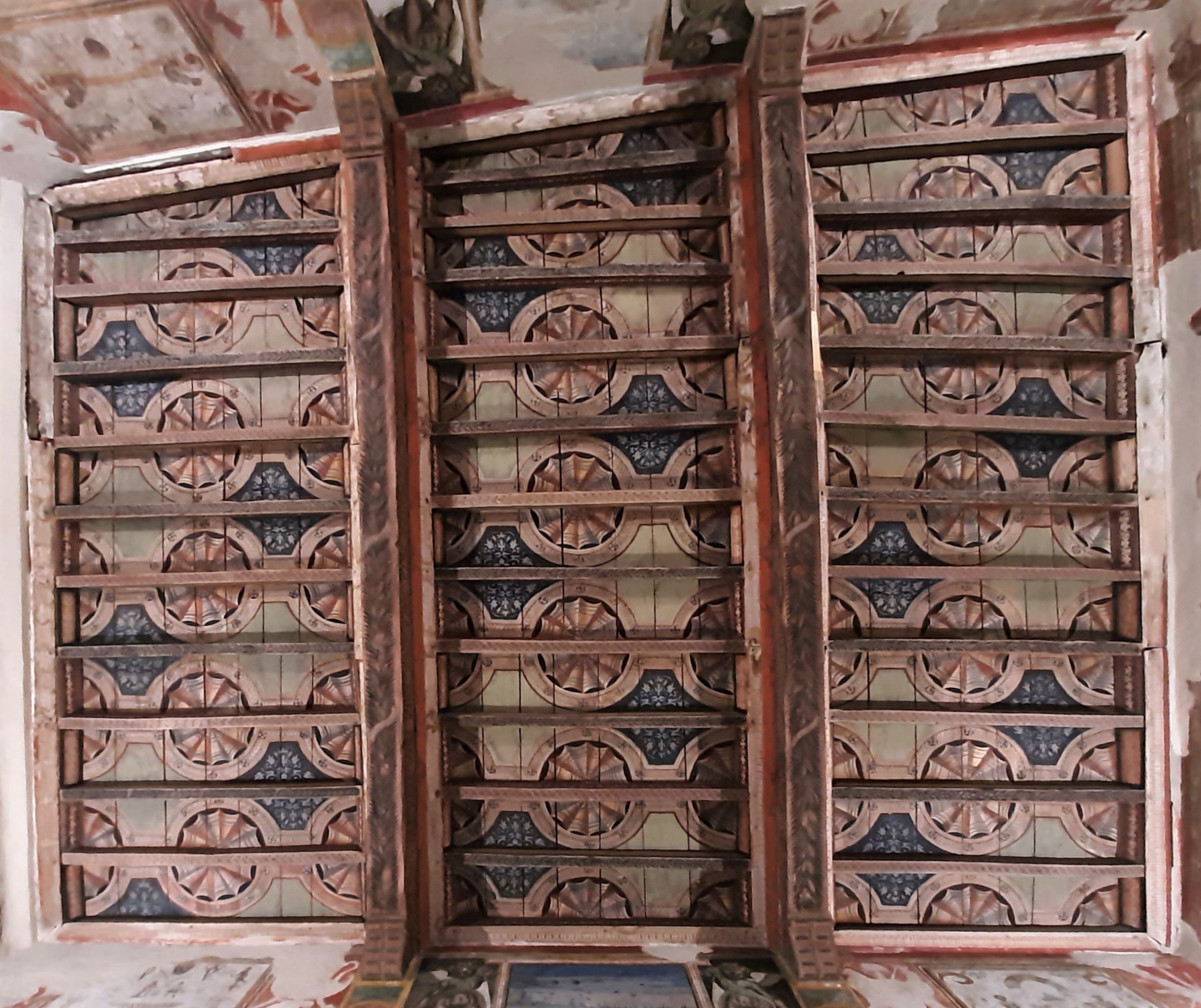 (Soffitto ligneo a cassettoni con affreschi cinquecenteschi, sala d’onore del Palazzo)