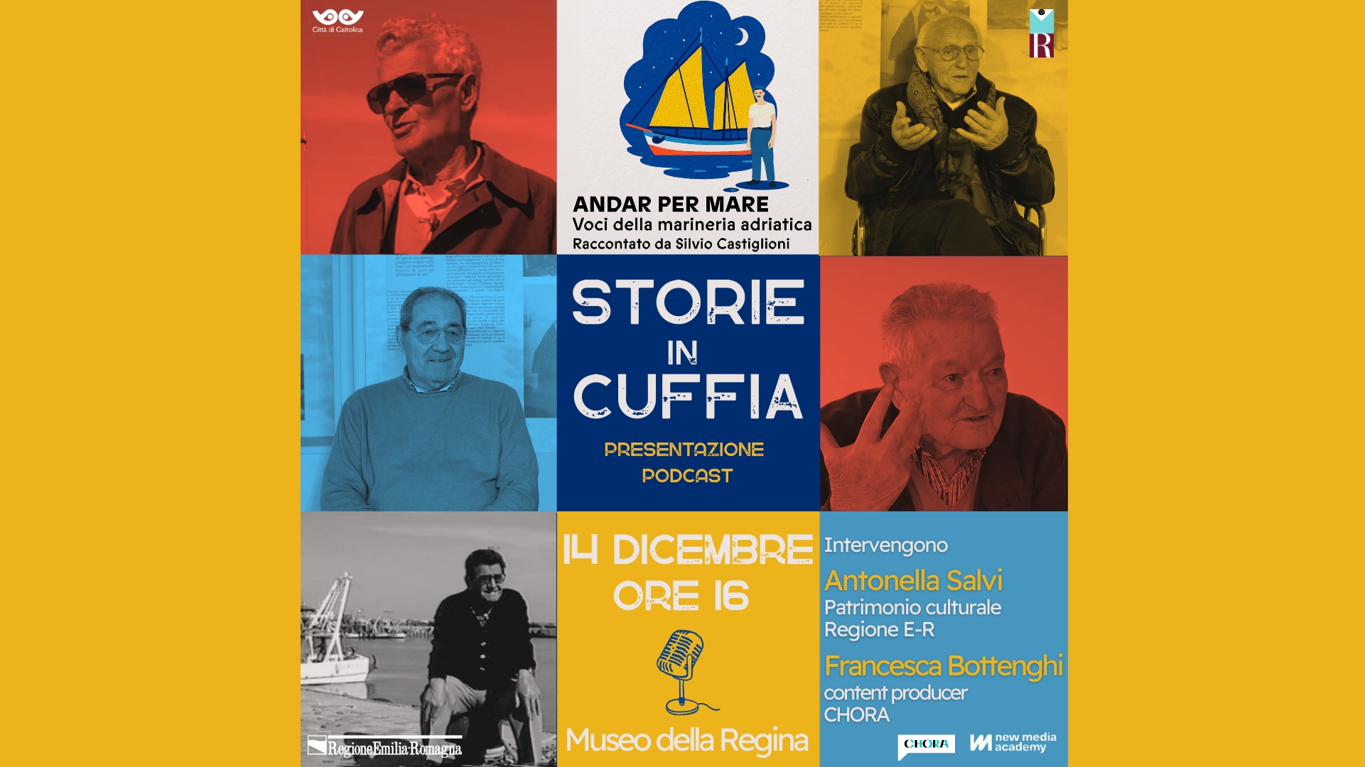 Intrecciando la voce presente dell’attore Silvio Castiglioni e quelle passate dei pescatori di Cattolica e Gabicce conservate nell’archivio del Museo della Regina, il racconto audio evoca il mondo della marineria e permette di capire cosa significava andar per mare agli inizi del Novecento.
